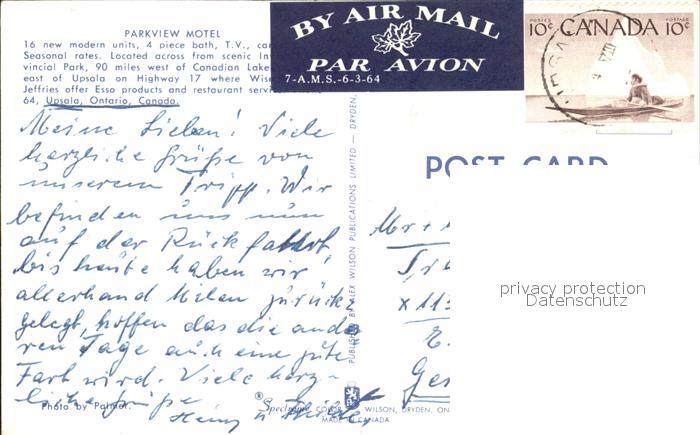 old postcard Ontario Canada Parkview Motel postalisch gelaufen Erhaltung siehe scans