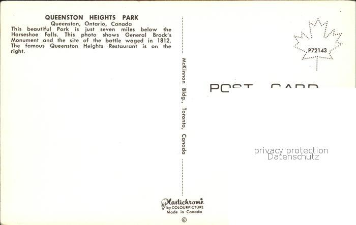 Ontario Canada Queenston Heights Park postalisch nicht gelaufen Erhaltung siehe scans