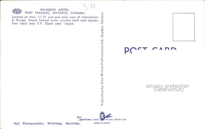Ontario Canada Rainbow Motel Fort Frances postalisch nicht gelaufen Erhaltung siehe scans