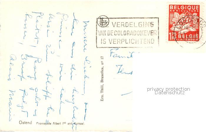 73607079 carte postale Oostende Ostende Albert I Wandeling en Kursaal postalisch gelaufen Erhaltung siehe scans [WerneD78] KatCode: 11070035000481