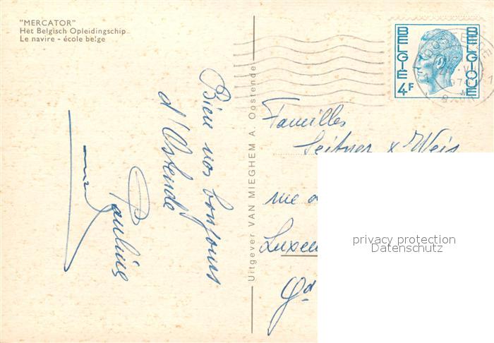 73361339 carte postale Oostende Ostende Belgisch Opleidingschip Le navire école belge Segelschulschiff postalisch gelaufen Erhaltung siehe scans [FriedD77] KatCode: 11070035000481