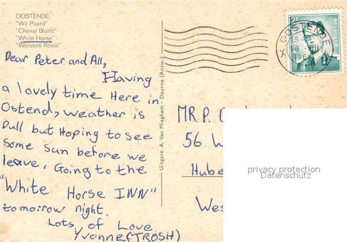 73358594 carte postale Oostende Ostende Cheval Blanc postalisch gelaufen Erhaltung siehe scans [WerneD78] KatCode: 11070035000481