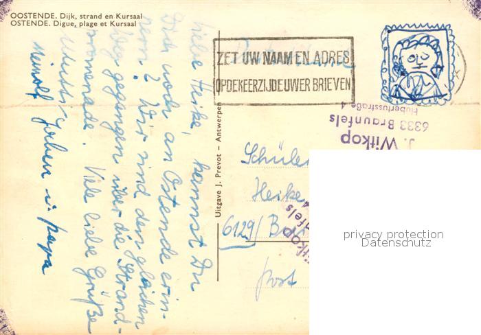 73358665 carte postale Oostende Ostende Dijk strand en Kursaal postalisch gelaufen Erhaltung siehe scans [WerneD78] KatCode: 11070035000481