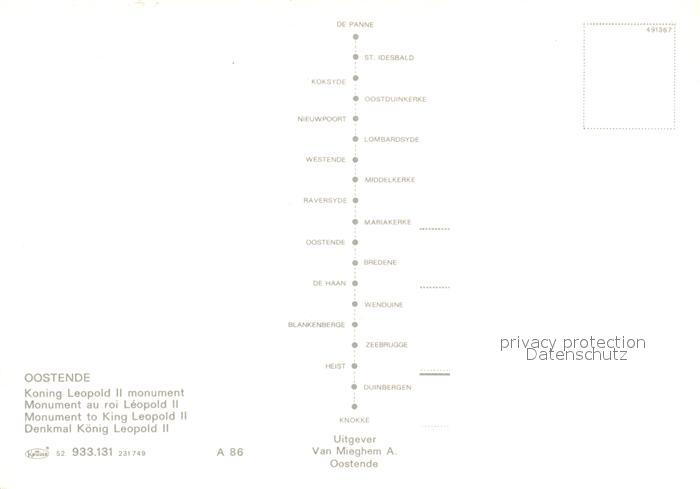 73358659 Oostende Ostende Koning Leopold II monument Pferdekutsche postalisch nicht gelaufen Erhaltung siehe scans [WerneD78] KatCode: 11070035000481