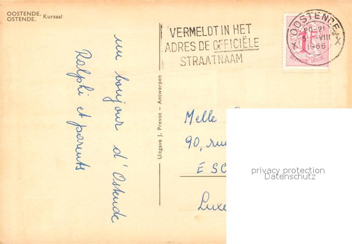 73358614 carte postale Oostende Ostende Kursaal postalisch gelaufen Erhaltung siehe scans [WerneD78] KatCode: 11070035000481