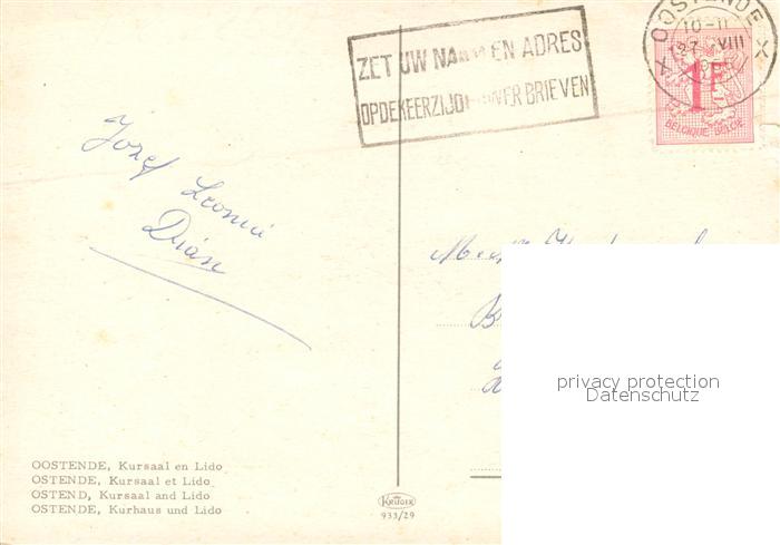 73357493 carte postale Oostende Ostende Kursaal en Lido postalisch gelaufen Erhaltung siehe scans [WerneD78] KatCode: 11070035000481