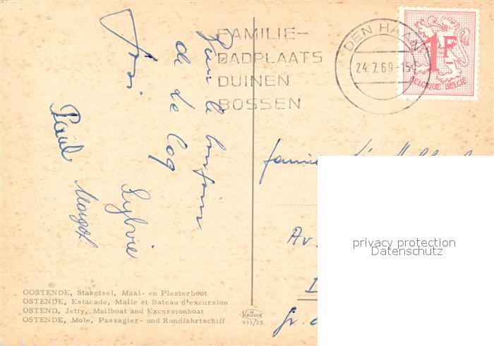 73361352 carte postale Oostende Ostende Mole Passagierschiff Rundfahrtschiff postalisch gelaufen Erhaltung siehe scans [FriedD77] KatCode: 11070035000481