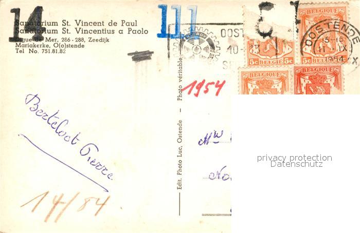 13549792 carte postale Oostende Ostende Sanatorium St Vincent de Paul postalisch gelaufen Erhaltung siehe scans [FriedD77] KatCode: 11070035000481