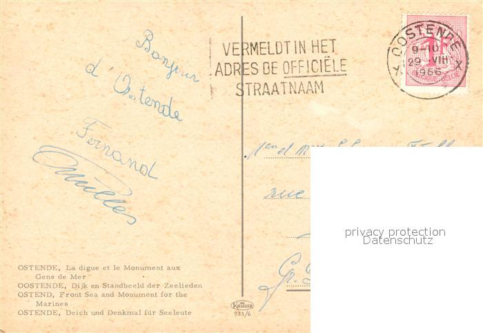 73358694 carte postale Oostende Ostende Strand Faehre Mole postalisch gelaufen Erhaltung siehe scans [WerneD78] KatCode: 11070035000481