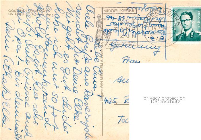 73358595 carte postale Oostende Ostende Vissershaven postalisch gelaufen Erhaltung siehe scans [WerneD78] KatCode: 11070035000481