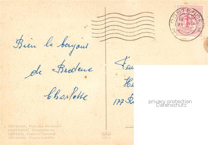 73362693 carte postale Oostende Ostende Vissershaven Fischereihafen Fischkutter postalisch gelaufen Erhaltung siehe scans [FriedD77] KatCode: 11070035000481