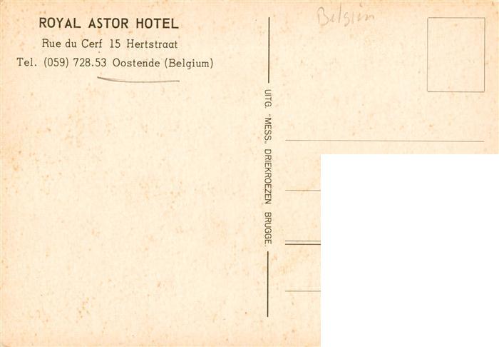 73922749 Oostende Ostende West-Vlaanderen Belgie Royal Astor Hotel postalisch nicht gelaufen Erhaltung siehe scans [FriedD77] KatCode: 11070035000481