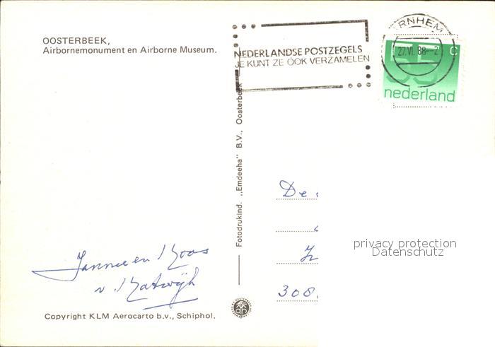 old postcard Oosterbeek Airbornemonument Airborne Museum Fliegeraufnahme postalisch gelaufen Erhaltung siehe scans