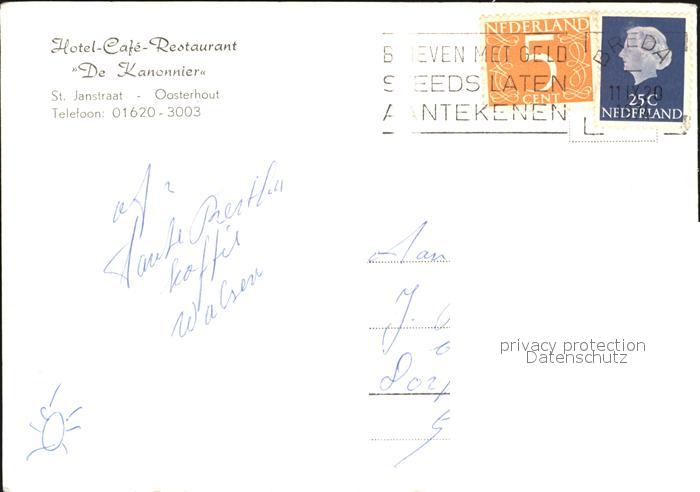 old postcard Oosterhout Hotel Cafe Restaurant De Kanonnier postalisch gelaufen Erhaltung siehe scans