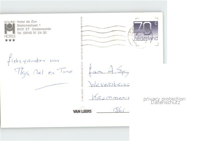 old postcard Oosterwolde Hotel de Zon postalisch gelaufen Erhaltung siehe scans