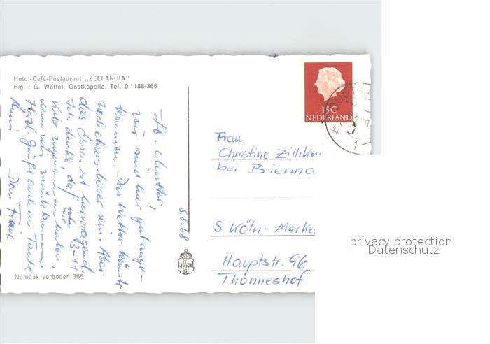 old postcard Oostkapelle Hotel Rest Zeelandia Molen Zee Strand en Duin Zeegezicht postalisch gelaufen Erhaltung siehe scans