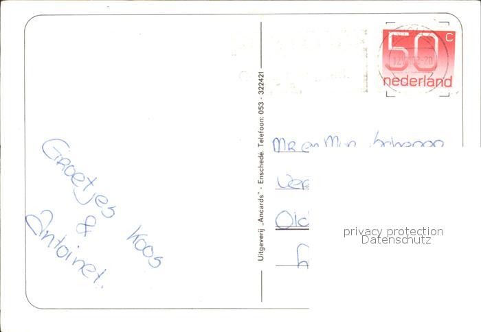 old postcard Ootmarsum Teilansichten Brunnen Planwagen postalisch gelaufen