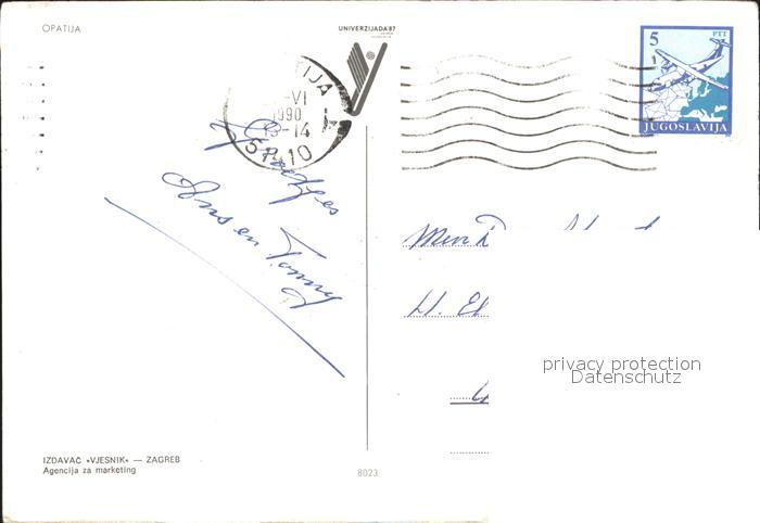 old postcard Opatija Abbazia Boote Strand postalisch gelaufen Erhaltung siehe scans