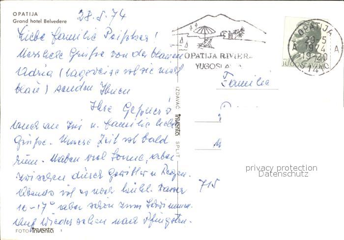 old postcard Opatija Abbazia Grand Hotel Belvedere postalisch gelaufen Erhaltung siehe scans