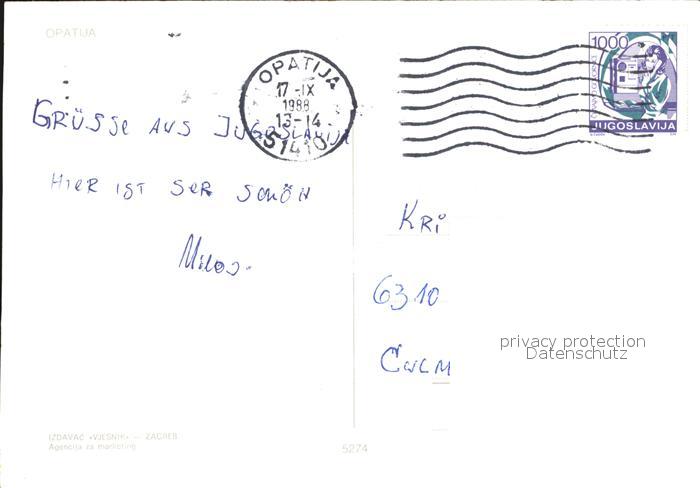 old postcard Opatija Abbazia Hafen Strand Hotel postalisch gelaufen Erhaltung siehe scans