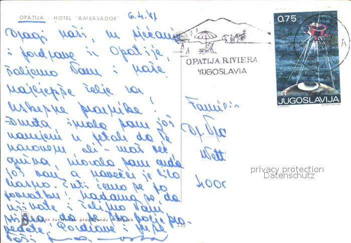 old postcard Opatija Abbazia Hotel Ambasador postalisch gelaufen Erhaltung siehe scans