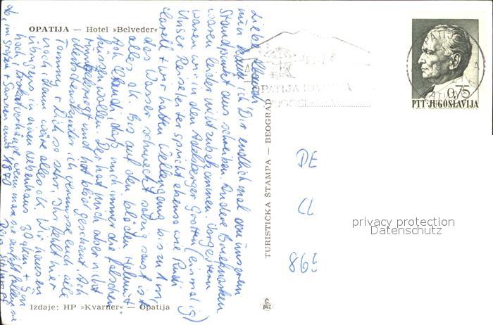 old postcard Opatija Abbazia Hotel Belveder postalisch gelaufen Erhaltung siehe scans