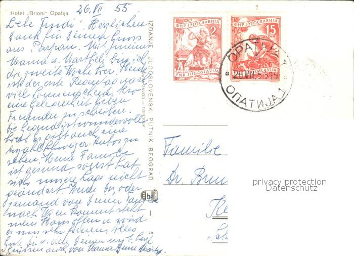 old postcard Opatija Abbazia Hotel Brioni postalisch gelaufen Erhaltung siehe scans