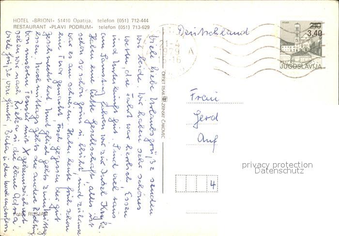 old postcard Opatija Abbazia Hotel Brioni Restaurant Plavi Podrum postalisch gelaufen Erhaltung siehe scans