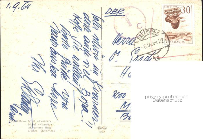 old postcard Opatija Abbazia Hotel Kvarner postalisch gelaufen Erhaltung siehe scans
