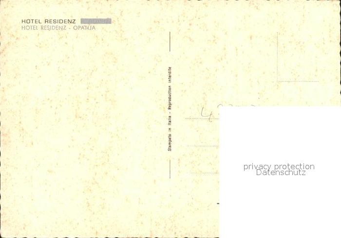 Opatija Abbazia Hotel Residenz postalisch nicht gelaufen Erhaltung siehe scans