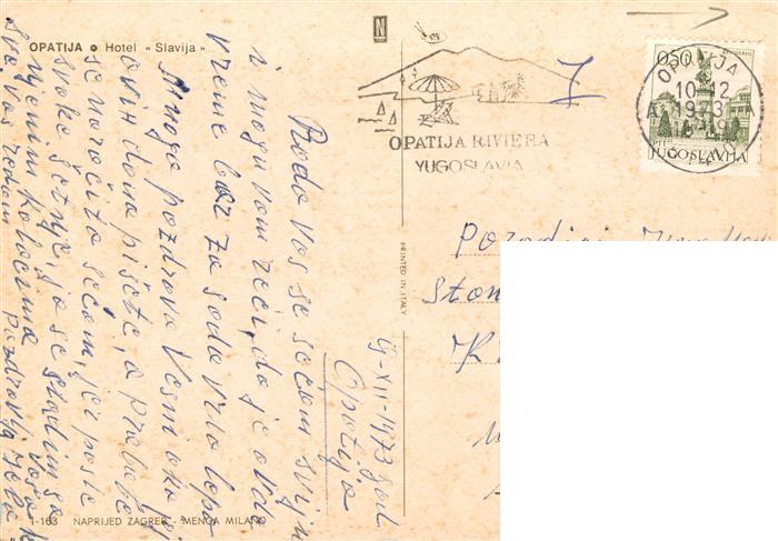 73871751 Opatija Abbazia Hotel Slavija postalisch gelaufen Erhaltung siehe scans [FriedD77] old postcard Frie Katcode 11260