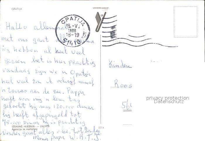 old postcard Opatija Abbazia Strandleben Denkmal postalisch gelaufen Erhaltung siehe scans