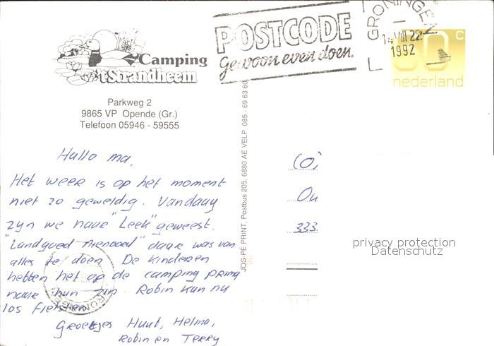 old postcard Opende Camping t Strandheem Strand Restaurant Kinderspielecke postalisch gelaufen Erhaltung siehe scans