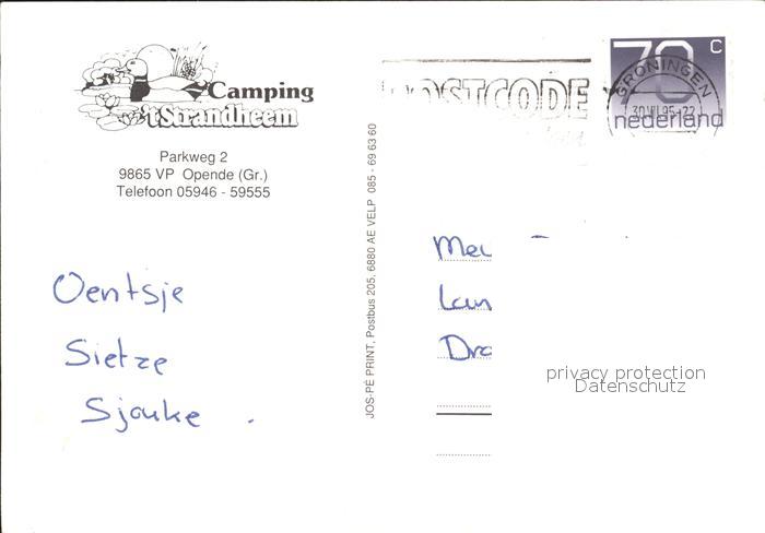 old postcard Opende Camping t Strandheem Strand postalisch gelaufen Erhaltung siehe scans