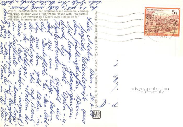 alte Postkarte Oper Wien Staatsoper Eiserner Vorhang postalisch gelaufen Erhaltung siehe scans