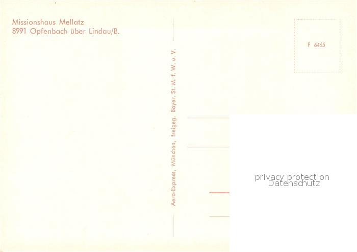 73643991 Opfenbach Missionshaus Mellatz Fliegeraufnahme postalisch nicht gelaufen Erhaltung siehe scans [WerneD78] KatCode: 11110009776122