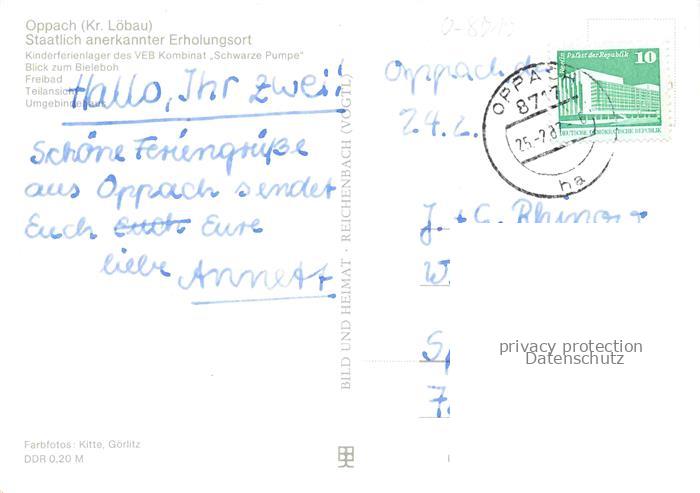 Oppach Picka Oberlausitz Sachsen Kinderferienlager Bielebohblick Freibad Teilansicht Umgebindehaus postalisch gelaufen Erhaltung siehe scans [WerneD78] alte Postkarte Wern Katcode 11110014286330
