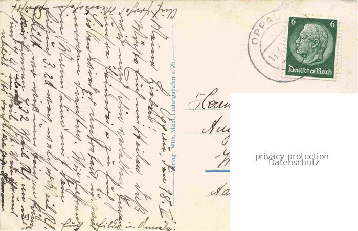 74058337 alte Postkarte Oppau Ludwigshafen Rhein Gemeindehaus Rathaus und ev. Kirche postalisch gelaufen Erhaltung siehe scans [FriedD77] KatCode: 11110007314000