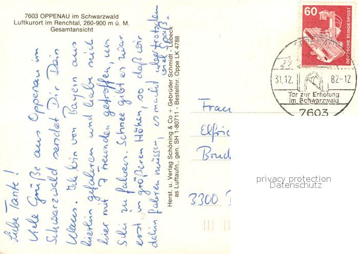 73175745 alte Postkarte Oppenau Fliegeraufnahme postalisch gelaufen Erhaltung siehe scans [NatalD47] KatCode: 11110008317098