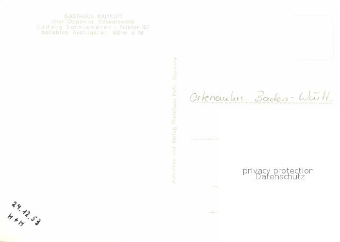 32659772 Oppenau Gasthaus Kalikutt postalisch nicht gelaufen Erhaltung siehe scans [AndreD76] KatCode: 11110008317098