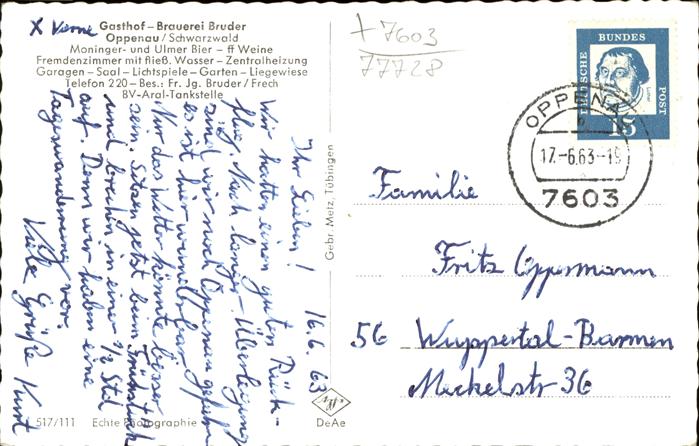 41209539 Oppenau Gasthof Brauerei Bruder KatCode 11110008317098