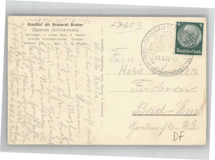 40712380 Oppenau Gasthof Zur Brauerei Bruder KatCode 11110008317098