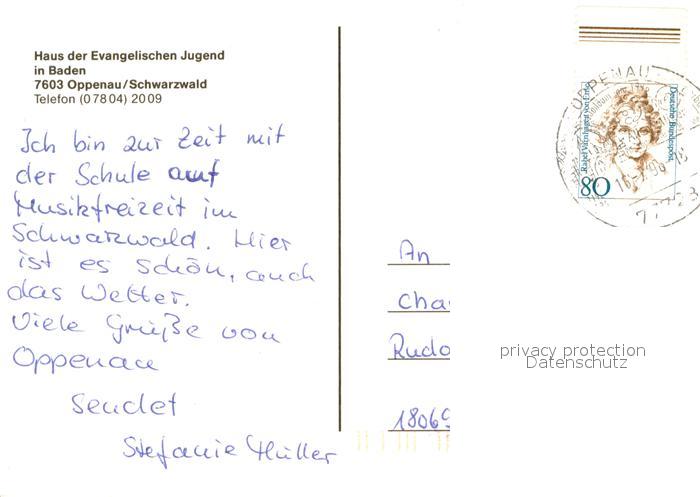 73655216 alte Postkarte Oppenau Haus der Ev Jugend in Baden Gaststube Zimmer Billardraum Konferenzraum postalisch gelaufen Erhaltung siehe scans [WerneD78] KatCode: 11110008317098