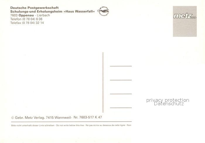 73165620 Oppenau Haus Wasserfall Deutsche Postgewerkschaft Speisesaal Hallenbad postalisch nicht gelaufen Erhaltung siehe scans [WerneD78] KatCode: 11110008317098