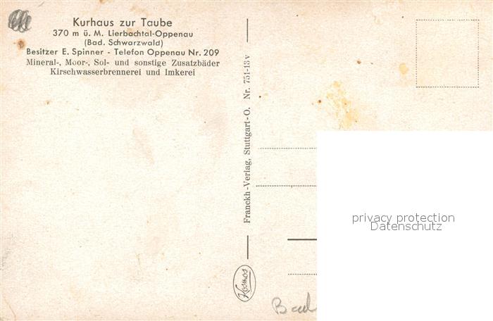 43491605 Oppenau Kurhaus zur Taube postalisch nicht gelaufen Erhaltung siehe scans [KathaD81] KatCode: 11110008317098