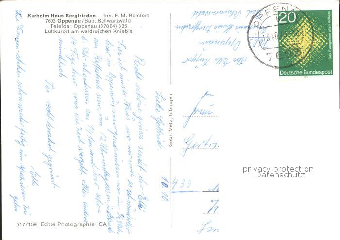 72283078 alte Postkarte Oppenau Kurheim Haus Bergfrieden postalisch gelaufen Erhaltung siehe scans KatCode: 11110008317098