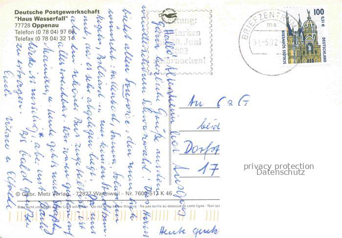 74136728 alte Postkarte Oppenau Ortenaukreis BW Deutsche Postgewerkschaft Haus Wasserfall postalisch gelaufen Erhaltung siehe scans [FriedD77] KatCode: 11110008317098