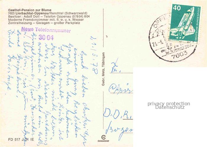 74023615 alte Postkarte Oppenau Ortenaukreis BW Gasthof Pension zur Blume im Lierbachtal Gastraum Wasserfall Landschaftspanorama postalisch gelaufen Erhaltung siehe scans [FriedD77] KatCode: 11110008317098