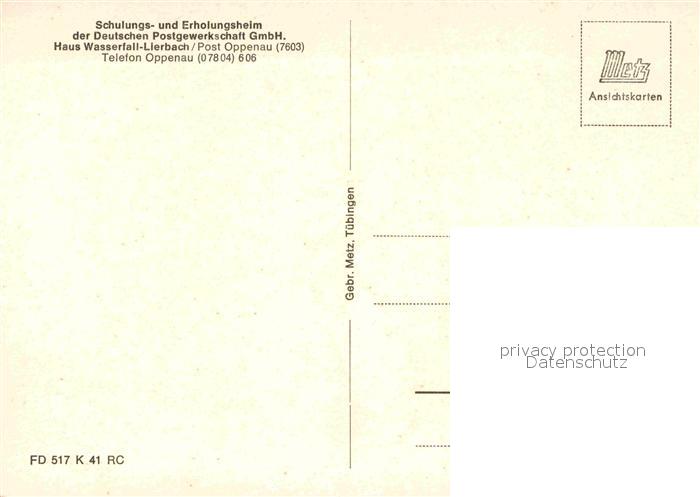 72693935 Oppenau Schulungs- Erholungsheim Haus Wesserfall-Lierbach postalisch nicht gelaufen Erhaltung siehe scans [NatalD47] KatCode: 11110008317098