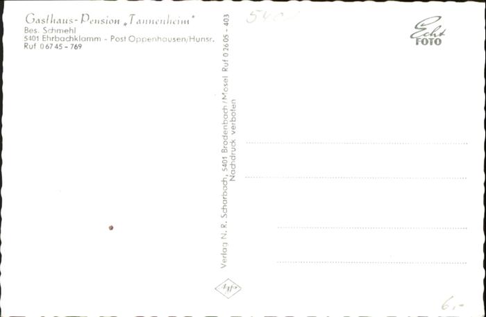 40925901 Oppenhausen Ehrbachklamm Gasthaus Pension Tannenheim KatCode 11110007140501